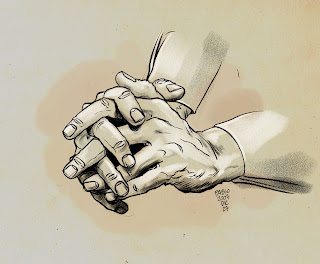 Queste le ho fatte senza copiare nessuna foto o modello, tutto con l'occhio della mente. E per quanto possa sembrarlo, non sono mani giunte in preghera. Più che altro in rilassamento.